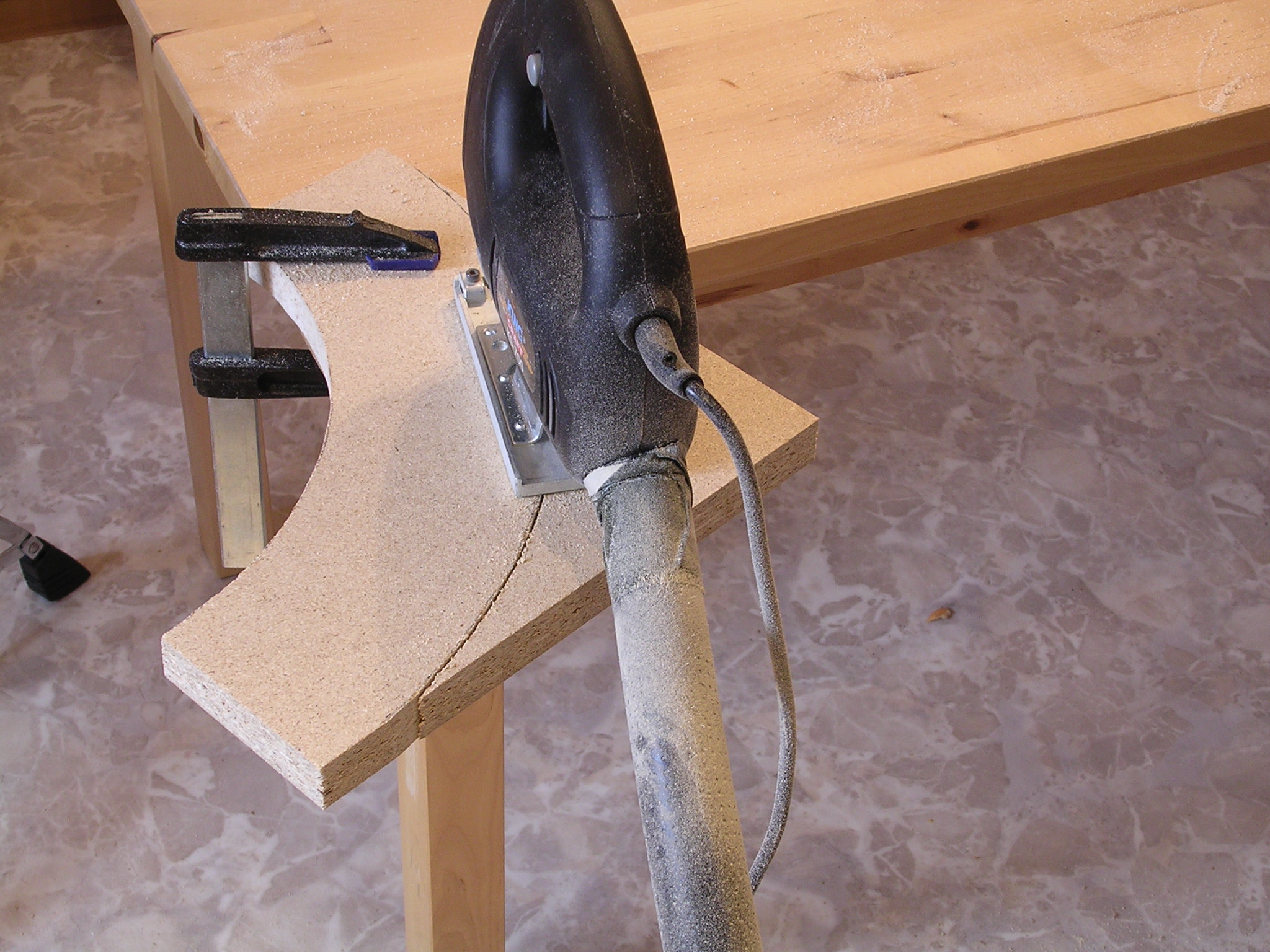 I had to be careful with the jigsaw not to cut into my dining table, which served